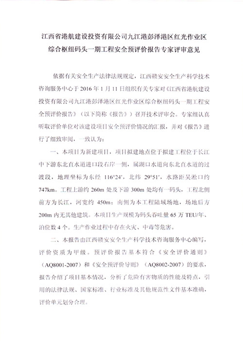 江西省港航建設投資有限公司九江港彭澤港區紅光作業區綜合樞紐碼頭一期工程